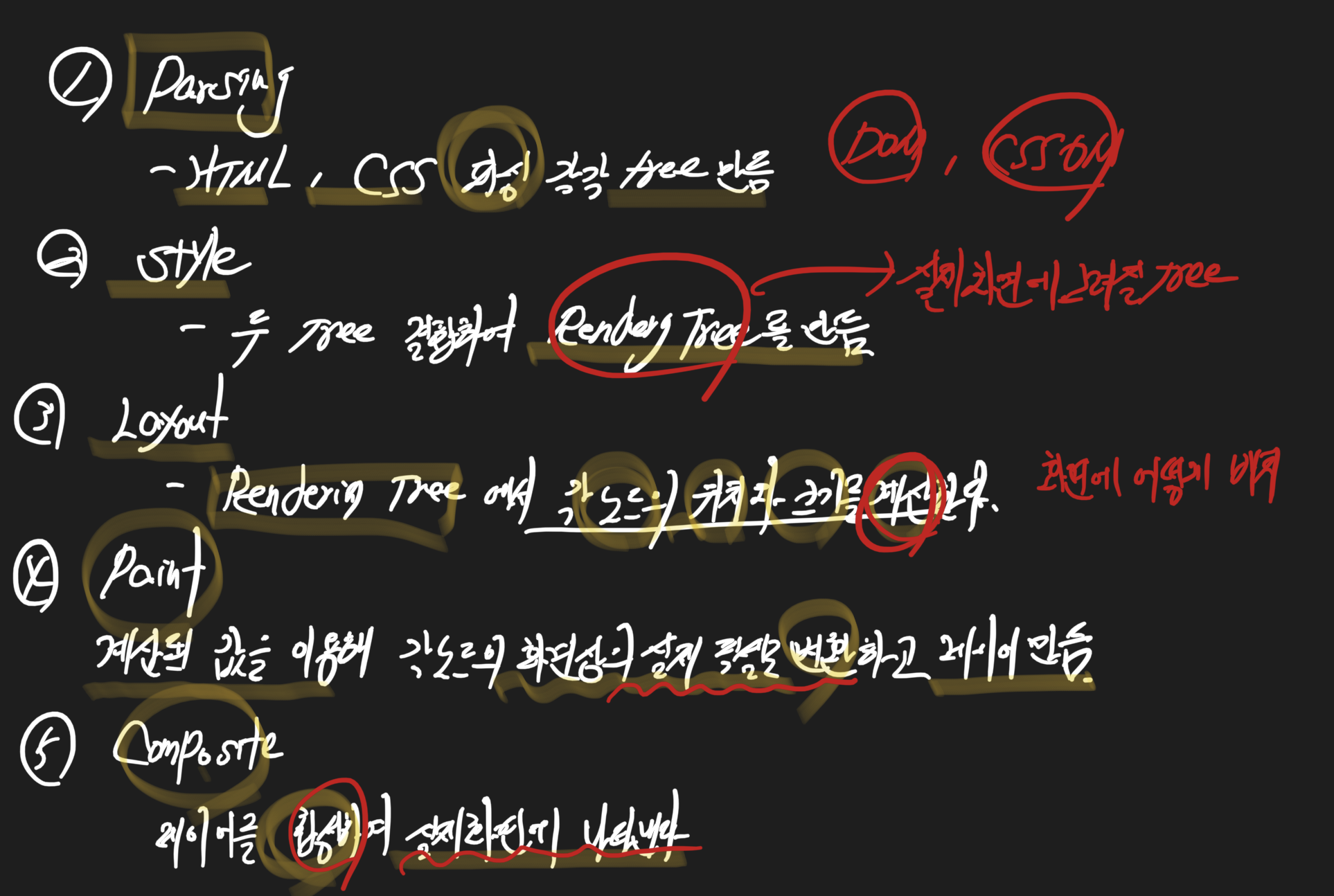 브라우저 렌더링의 기본적인 동작은 크게 5단계로 나눌 수 있다.