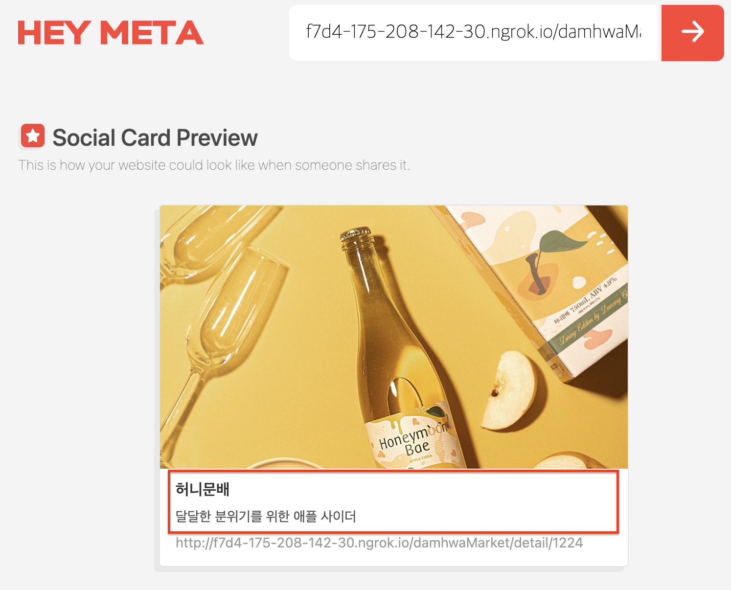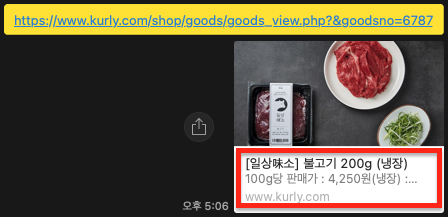 상품 공유 시 해당 프로덕트 이미지 및 타이틀, 디스크립션까지 모두 나오는 걸 확인할 수 있어요!