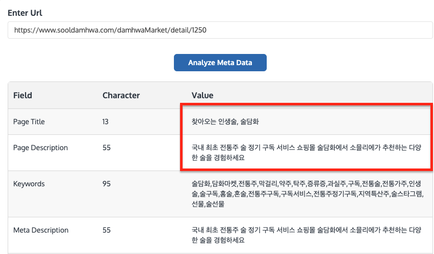 <title>찾아오는 인생술, 술담화</title>SEO 태그 - meta