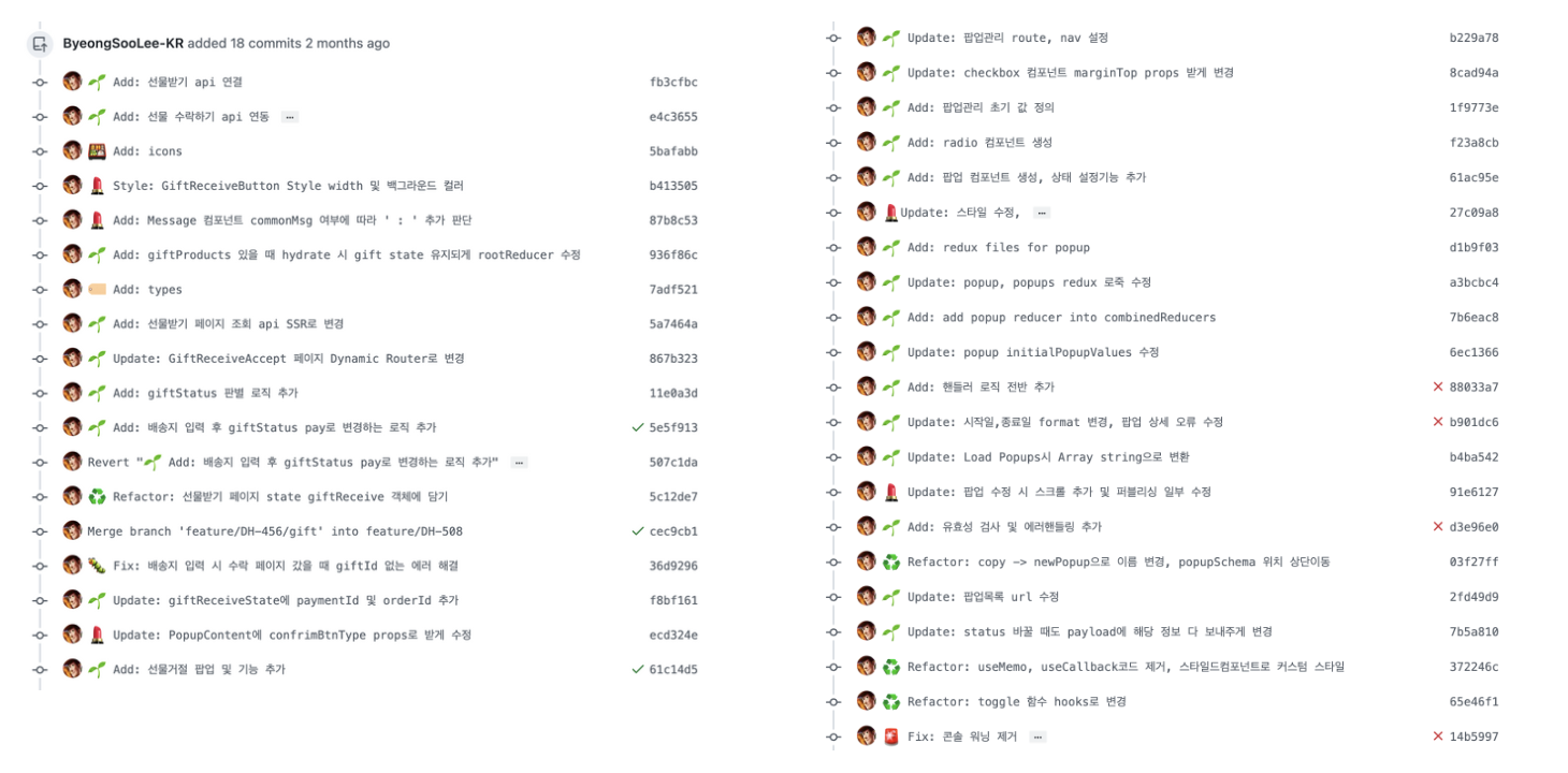 한 작업을 기능 및 페이지 단위로 잘게 쪼개서 PR의 양이 엄청 많다.