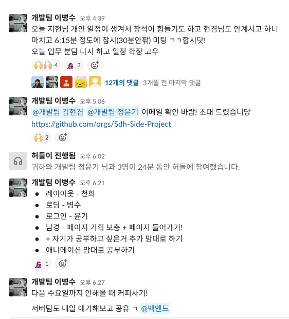 하지만 칼퇴하던 개발팀이 매 주 수요일마다 모여 작당모의(?) 하는 것을 본 사람들은 하나같이 "사이드프로젝트 뭐해요?"