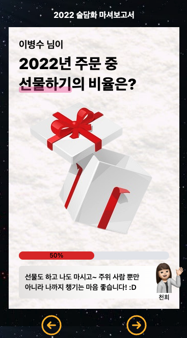 - 마지막 엔딩 전에 축하포의 애니메이션과 함께 2022년에 정말 수고 많았고 2023년도 화이팅 해보자는 페이지를 만들면 어떨까?(신년인사)